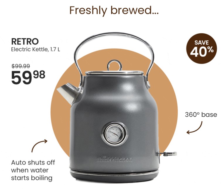 From now until October 26, get the Retro Kettle 1.7L for $59.98 – reg. $99.99!