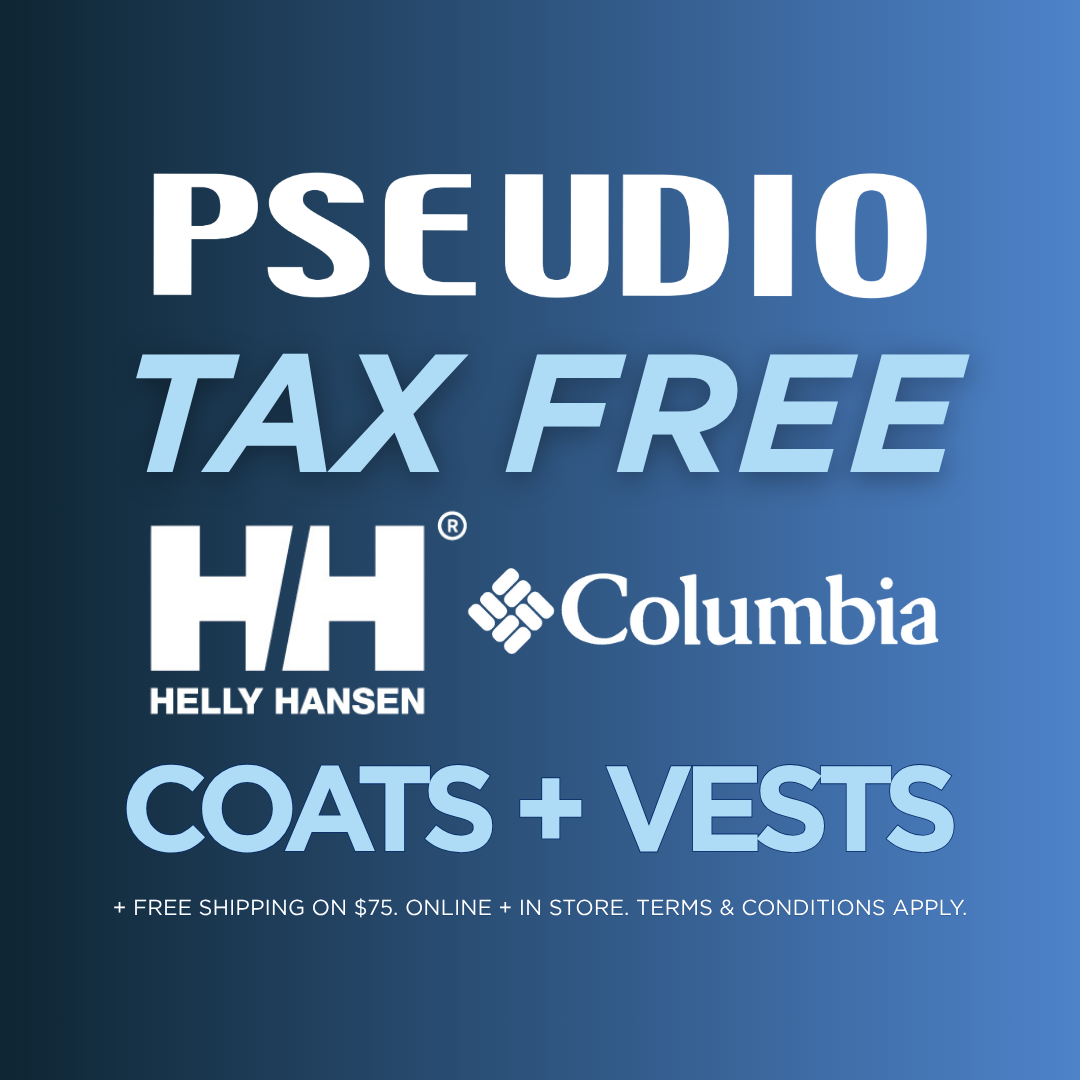 Enjoy TAX FREE savings on Helly Hansen & Columbia coats and vests at Pseudio 🧥