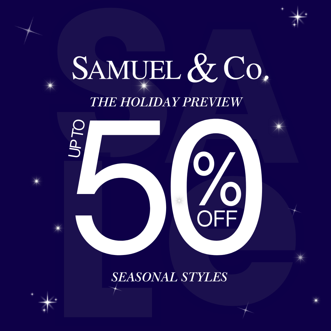 The Holiday Preview has arrived at Samuel & Co. ✨ Enjoy up to 50% off new markdowns in store now.